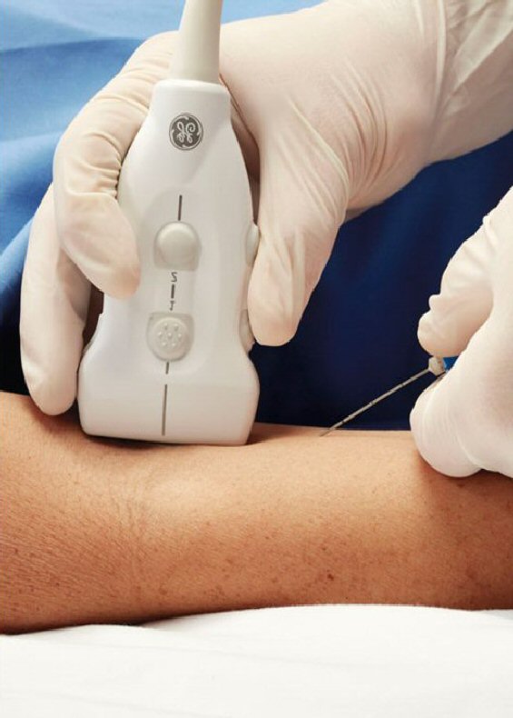 Ο Ιατρός – Ακτινολόγος εισάγει στο σημείο αυτό βελόνα αιμοληψίας, της οποίας η πορεία παρακολουθείται υπερηχογραφικά ώσπου η άκρη της να εισέλθει στο ογκίδιο το οποίο χρήζει βιοψίας, αποφεύγοντας έτσι την τρώση παρακείμενων δομών ή αγγείων.